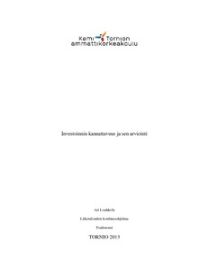 Tämän opinnäytetyön tavoitteena oli selvittää investoinnin kannattavuutta sekä sen arviointia. Tutkimusongelmana olivat kuinka uuden investoinnin arviointi tehdään ja mitkä ovat kriittisimmät tekijät kannattavuuden varmistamisen suhteen. Työssä keskitytään varsiin suuriin liiketoiminnallisiin investointeihin, yrityskaupat rajataan tutkimuksen ulkopuolelle. Opinnäytetyössä ei myöskään tarkastella rahoituksen, verotuksen eikä pääomakustannusten vaikutusta. Työn oletuksena on että pääomia on käytössä lähes rajattomasti.