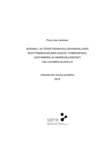 Väli-Suomen Kaste-hankkeet ovat osa kansallista Sosiaali- ja terveydenhuollon kehittämisohjelmaa, Kaste-ohjelmaa. Opinnäytetyön tarkoituksena oli selvittää Väli—Suomen alueen Kaste-hankkeiden, Ikäkasteen, Lasten ja nuorten palveluiden kehittämishanke Kasperin ja Syrjäytyneestä osalliseksi sosiaalityön keinoin - S.O.S –hankkeen, organisoitumisen, johtamisrakenteen ja johtamisen, hallinnoinnin ja viestinnän toimivuutta. Lisäksi selvitettiin sitä, ovatko Kaste-hankkeiden tavoitteet tukeneet mukana olevien kuntien strategisia tavoitteita. Tutkimusmenetelmänä käytettiin laadullista tutkimusta, joka toteutettiin sekä teemahaastatteluilla että sähköisellä kyselyllä. Tampereen kaupunki toimii kolmen Väli-Suomen alueen Kaste-hankkeen hallinnoijana ja on ollut tämän opinnäytetyön toimeksiantajana.