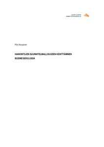 Opinnäytetyön aiheena oli hankintojen suunnitelmallisuuden kehittäminen BusinessOulussa. Työn toimeksiantajana oli Oulun kaupungin liikelaitos BusinessOulu, jolla oli tarve kehittää hankintojensa toteuttamisen suunnitelmallisuutta. Työn teoriaosassa kuvataan hankintojen suunnitelmallisuuteen vaikuttavat tekijät, kuten hankinnan tarve, markkinatilanne, arvo, rahoittaminen, toteuttamistapa, resurssit ja aikatauluttaminen. Tavoitteena oli selvittää kyseisiin tekijöihin liittyen, mitä ongelmia suunnitelmattomuus aiheuttaa ja miten suunnitelmallisuutta voidaan kehittää.