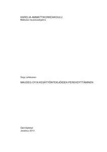 Opinnäytetyön tavoitteena oli kokonaisvaltaisen kesätyöntekijöiden perehdyttämisprosessin toteuttaminen ja tarvittavan perehdyttämismateriaalin laatiminen Maudeg Oy:lle. Perehdyttämisprosessi toteutettiin kesällä 2013 ja se koostui alkuperehdyttämisestä ennen työhöntuloa, ensimmäisen päivän perehdyttämisestä, koulutustilaisuudesta, työnopastuksesta ja palautekeskusteluista. Perehdyttämismateriaali muodostui jokaiselle tulokkaalle laaditusta perehdyttämissuunnitelmasta ja työnohjeistuksista. Opinnäytetyön lopulliseksi tuotokseksi valmistui perehdyttämiskansio, jonka kohderyhmänä ovat Maudeg Oy:n tulevat kesätyöntekijät.