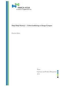 This is a research based thesis which explains Urban Gardening and how to setup this garden at Haaga-Helia University of Applied Sciences, Haaga. The purpose of this thesis is to highlight the importance of sustainability and encouraging green way of living by starting a pilot project within the university building.
