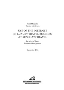 Conclusions were provided as a summary with some specific recommendations for Renshaw Travel. Followed by concluding remarks with some essential points to express, the conclusions part has be-come the visible results of this thesis, concerning the use of the Internet in luxury travel business by Renshaw Travel.