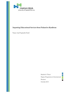 This thesis focuses on importing educational services from Finland to Kurdistan. The thesis first introduces the topic and the case company. After that it will briefly discuss the Kurdistan Region and then looks into the educational systems in the Kurdistan Region and Finland, finds problems and offers solutions based on the Finnish education system.