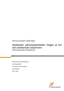 Tarve opinnäytetyölle tuli esille Ruoveden terveyskeskuksen päivystyspoliklinikalla työskenteleviltä hoitajilta, sillä kaikilla työntekijöillä ei välttämättä ole riittävää osaamista ensihoito- tai päivystyshoitotyöstä. Opinnäytetyön tarkoituksena on kuvata sairaanhoitajien päivystyshoitotyön osaamista keskeisten potilasryhmien triagessa ja hoidon aloittamisessa ja kehittää sen perusteella hoitosuositukset. Tavoitteena on kehittää Ruoveden terveyskeskuksen päivystyspoliklinikan työntekijöiden hoitotyön laatua luomalla yhtenäiset toimintakäytänteet, jotka edistävät potilaan jatkohoitoa ja selviytymismahdollisuuksia.