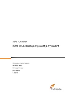Opinnäytetyö käsittelee 2000-luvun elokuvaleikkaajan työtapoja. Työssä tutkitaan kolmen haastattelun pohjalta, kuinka leikkaaja suorittaa ensikosketuksensa materiaalin ja mitä sen matkan aikana tapahtuu, aina ensimmäisestä versiosta valmiiseen elokuvaan asti. Lisäksi leikkaajat kertovat minkälaisia työtapoja heidän ja ohjaajien välillä vallitsee.