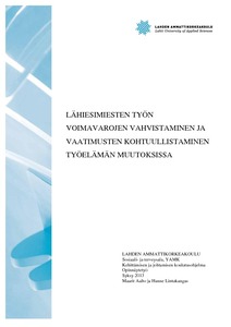Tämä opinnäytetyö toteutettiin työelämälähtöisenä kehittämishankkeena Kouvolan kaupungin vanhusten asumispalveluiden, terveyskeskussairaalan vuodeosastojen ja Pohjois-Kymen sairaalan vuodeosastojen lähiesimiehille. Hanke toteutettiin toimintatutkimuksena. Kehittämishankkeen tarkoituksena oli vahvistaa kohdeorganisaation lähiesimiesten työn voimavaroja ja kohtuullistaa työn vaatimuksia työelämän muutoksissa. Kehittämishankkeen tavoitteena oli kerätä tietoa alkukartoituksen avulla, mitä voimavaroja sekä mitä vaatimuksia lähiesimiehet kuvasivat työssään olevan työelämän muutoksissa. Alkukartoituksen tulosten pohjalta tavoitteena oli luoda kehittämistyöryhmän tapaamisissa työkalu, joka osaltaan vahvistaa lähiesimiesten työn voimavaroja sekä kohtuullistaa työn vaatimuksia. Kehittämistyöryhmään osallistui viisi lähiesimiestä ja Kouvolan kaupungin työhy-vinvointisuunnittelija.