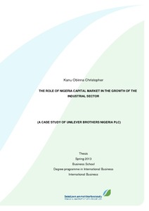 The key aim of this thesis is to identify and discuss the contribution on the roles of the Nigerian capital market in mobilizing long-term finance for the development of the industry sector. Another aim is to examine the activities of the Nigerian industrial sector, to identify the problems and prospect of the Nigerian capital market in financing and sustaining industrial enterprises. Most of the information for the study was obtained from secondary sources; they were extracted from the Central Bank of Nigerian Publication 2005 and business newspapers. The capital market is a financial institution set up for the granting of medium and long-term instruments. It is an instrument of financing the operations of various sectors of the Nigerian economy. This study also analyses the economies of developing countries e.g. the African economy in brief and discusses the 5 major economies in Africa, the largest economies in West Africa, and their rankings in the world. Nigeria has the biggest economy in West Africa, the 3rd in Africa, and occupies the 30th position in the world.
