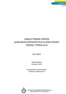 Työssä tutkittiin Jyväskylän ammattikorkeakoulun lähiverkon laatua kahdella kampuksella, Rajakadun hallintosiivessä ja Dynamon auditoriossa. Kampusten lähiverkko koostui 802.11-tekniikoita hyödyntävistä tukiasemista. Dynamon auditoriossa mitattavia tukiasemia oli yksi kappale ja Rajakadun hallintosiivessä tukiasemia kahdessa eri kerroksessa useita kappaleita. Työn lähtökohtana oli mitata langattoman verkon toimintaa käyttäen 7signal-työkalua.