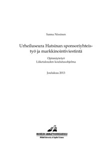 Opinnäytetyöni tavoitteena oli toimeksiantajana toimivan urheiluseura Hatsinan markkinoinnin tehostaminen ja sponsoriyhteistyön kehittäminen. Tavoitteen saavuttamiseksi laadin seuralle alustavan markkinointiviestintäsuunnitelman. Tutkimusongelmani oli, miten tehostaa urheiluseuran markkinointia ja lisätä sponsorituloja.