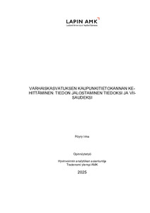 (2025)Opinnäytetyön tavoitteena on tuottaa konkreettisia kehittämisehdotuksia VATTI-tietokannan visualisoinnin ja käytettävyyden parantamiseksi, jotta varhaiskasvatuksen johto ja päätöksentekijät voivat hyödyntää tietokantaa ...