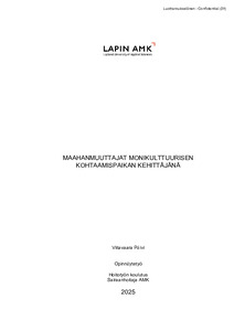 (2025)Opinnäytetyön aiheena oli maahanmuuttajat monikulttuurisen kohtaamispaikan kehittäjänä. Opinnäytetyö tehtiin Tornion Perheiden Talon Arkisuomikahvilatoi-minnan kehittämishaasteeseen. Työn tarkoituksena oli kartoittaa ... -