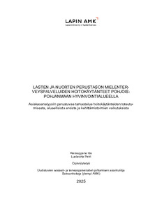 (2025)Opinnäytetyön tavoitteena oli selvittää Pohjois-Pohjanmaan hyvinvointialueen lasten ja nuorten perustason mielenterveyspalveluissa käytettäviä hoitokäytänteitä vuosien 2024 ja 2025 asiakasanalyysien perusteella. Tutkimuksessa ... -