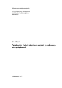 Opinnäytetyön tarkoituksena oli selvittää, kuinka Facebookia voidaan käyttää pankki- ja vakuutusalan yrityksen markkinointiviestinnässä. Opinnäytetyössä tutkittiin, kuinka toimiva viestintäkanava Facebook on yritykselle, kuinka asiakkaat kokevat Facebookin käytön ja miten sitä voitaisiin hyödyntää tehokkaasti markkinointiviestinnässä ja tiedotuskanavana. Toimeksiantaja yrityksenä opinnäytetyössä oli Etelä-Karjalan Osuuspankki.