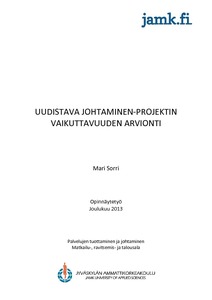 Opinnäytetyön tarkoitus oli selvittää Uudistava johtaminen -projektin vaikuttavuutta. Uudistava johtaminen -projekti on toteutettu ESR -projektina Jyväskylän ammattikorkeakoulun ja Jyväskylän Yliopiston kauppakorkeakoulun yhteistyönä 1.5.2011 – 30.6.2014. Projektilla on pyritty tunnistamaan työurien pidentämisen haasteita Keski- Suomen alueen pk -yrityksissä. Projekti on toteuttanut yrityksille laajan alkukartoituskyselyn ja sen avulla tunnistanut ongelmakohtia yritysten työyhteisöjen toimivuudessa. Projekti on toteuttanut yrityksille yrityskohtaisia työpajoja ja yhteisiä tilaisuuksia, joiden kautta on pyritty kehittämään yritysten johtamista.