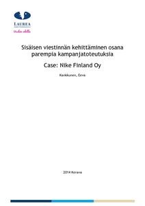 Tämä opinnäytetyö tehtiin Nike Finland Oy:lle, ja sen aiheena oli sisäisen viestinnän kehittäminen osana parempia kampanjatoteutuksia.