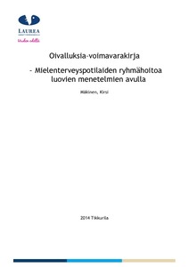 Tässä opinnäytetyössä tutkittiin mielenterveyspotilaiden ryhmähoitoa varten laaditun menetelmäkäsikirjan käytettävyyttä ja hyödyllisyyttä. Opinnäytetyön tarkoituksena oli luoda uusi ryhmähoitomenetelmä ja kehittää psykiatristen potilaiden ryhmähoitoa päiväosastolla. Opinnäytetyön tavoitteena oli edistää potilaiden hyvinvointia luovien menetelmien avulla. Opinnäytetyön tuotos on menetelmäkäsikirja HUS:n Peijaksen sairaalan akuuttipsykiatrian päiväosastojen psykiatristen sairaanhoitajien käyttöön. Menetelmäkäsikirja sisältää ohjeet luovien menetelmien ryhmätoimintaan, jossa osallistujat askartelevat Oivalluksia–voimavarakirjan. Päähanke, johon opinnäytetyö kuuluu, on Helsingin ja Uudenmaan sairaanhoitopiirin (HUS) psykiatrian toimialan ja Laurea-ammattikorkeakoulun yhteistyönä toteutettava hoitotyön laadunkehittämishanke vuosille 2011—2015.