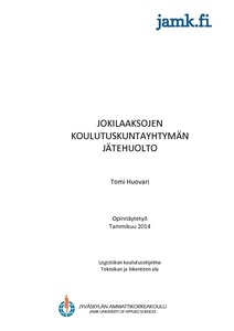 Yhteiskunnan elintason noustessa jätettä muodostuu koko ajan enemmän. Toimiva jätehuolto on yksi yhteiskunnan toimivuuden perusasia. Tämän opinnäytetyön tavoitteena oli muodostaa kokonaiskuva Jokilaaksojen koulutuskuntayhtymän jätteistä ja niiden kuljetuksista. Työssä tarkasteltiin myös jätehuollosta aiheutuvia kustannuksia, sekä mahdollisuuksista vaikuttaa niihin. Opetuksellinen näkökulma löytyi jätehuollon kuljetusten työturvallisuudesta. Tavoitteena oli myös lisätyön etsiminen logistiikan opiskelijoille.
