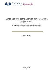 Tämän opinnäytetyön tavoitteena oli tutkia kansanedustajien mielipiteitä kansalaisaloitejärjestelmän tarpeellisuudesta, toimivuudesta ja kehittämisestä. Kansalaisaloiteinstituution vahvistamista tulevaisuudessa koskevat tutkimuskysymykset liittyivät sitovien kansanäänestysten järjestämiseen sekä kansalaisaloitteen vireillepano- ja kannatusilmoitusikärajan laskuun. Tutkimus toteutettiin syksyn 2013 aikana kvantitatiivisella survey-tutkimuksella, joka sisälsi strukturoitujen kysymysten lisäksi mahdollisuuden avoimeen kommentointiin.