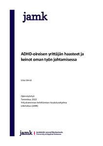 Opinnäytetyössä tutkittiin ADHD:n vaikutusta yksityisyrittäjän uraan ja päivittäiseen työntekoon. Työ toteutettiin laadullisin menetelmin haastatteluiden avulla. Tavoitteena oli selvittää, millaisia haasteita ADHDoireiset yrittäjät kohtasivat erilaisissa tehtävissä ja ympäristöissä toteuttaessaan yrittäjämäisiä projekteja,joihin vaadittiin itsenäistä organisoitumista. Erityisesti työllä pyrittiin löytämään myös ratkaisuja haasteisiin,