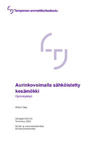 Aurinkovoimalan sähköntuotanto kehittyy ja lisääntyy Suomessa. Tämä mahdollistaa aurinkovoimaloiden rakentamista yksityisiin ja julkisiin rakennuksiin. Tässä opinnäytetyössä tutkitaan aurinkovoimalan soveltuvuutta kesämökille. Tavoitteena oli analysoida aurinkovoimalan sähköntuotantoa tunti- sekä vuositasolla. Tarkoituksena oli löytää myös oikeanlainen sähkövoimalan laitteisto, joka sopisi mökille.