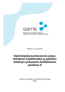 Väärinkäytösmonitoroinnin järjestelmätuen käyttöönotto ja petosten ehkäisyn prosessien kehittäminen pankissa X