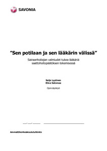 Opinnäytetyön tarkoituksena oli selvittää sairaanhoitajien valmiuksia saattohoitotyöhön ja lääkärin tukemiseen saattohoitopäätöksen tekemisessä perusterveydenhuollossa. Opinnäytetyön tavoit-teena oli herättää keskustelua toimeksiantajan työyhteisössä ja edistää sairaanhoitajien ja lääkä-reiden välistä yhteistyötä saattohoitopäätösten tekemisessä ja kuolevan potilaan hoidossa.