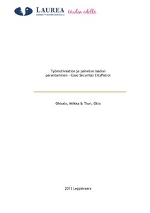 Tämän opinnäytetyön tarkoituksena oli selvittää yksityisiä turvallisuuspalveluita tarjoavan kohdeyrityksen liiketoimintayksikön työntekijöiden työmotivaation tilaa. Lisäksi tutkittiin, mitkä tekijät vaikuttavat työmotivaatioon. Tavoitteena oli myös tuottaa kehitysehdotuksia mahdollisesti ilmi tulleisiin ongelmiin.