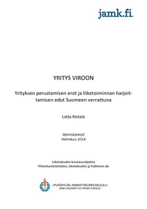 Opinnäytetyössä vertailtiin yrityksen perustamista Virossa ja Suomessa. Lisäksi opinnäytetyössä selvitettiin liiketoiminnan harjoittamisen etuja Virossa. Tavoitteena oli saada kuva yrityksen perustamisen vaiheista Virossa ja niiden erovaisuuksista verrattuna Suomeen sekä selvittää liiketoiminnan harjoittamisen etuja Virossa ja niiden taustalla vaikuttavia tekijöitä. Opinnäytetyön toimeksiantajana toimi Jyväskylän ammattikorkeakoulun Konsultoivan taloushallinnon kärki.