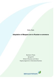 Opinnäytetyö on tehty suomalaiselle Maspart.com -verkkokauppayritykselle, joka on kiinnostunut laajentamaan liiketoimintaansa Venäjän e-kauppaan. Työn tarkoituksena on tutkia kyseisen verkkokaupan soveltuvuutta Venäjän e-kauppaan sekä antaa yritykselle tarvittavaa tietoa, jota voi käyttää verkkokaupan kehittämiseen.