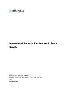 Every year hundreds of students from different backgrounds come from abroad to study in the South Karelia region. The author noticed the issue of the employment of international students in South Karelia by discussing with fellow students about the topic while studying International Business.