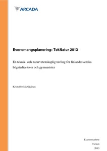 Teknatur, en finlandssvensk tävling inom naturvetenskap och teknik för finlandssvenska högstadieelever och gymnasister, arrangerades första gången år 1993 och har sedan dess arrangerats årligen. Syftet med detta examensarbete är att planera samt genomföra evenemanget Teknatur i samarbete med SVT (Svenska Tekniska Vetenskapsakademin), TFiF (Tekniska Föreningen i Finland), Fysikersamfundet i Finland och Arcadas ingenjörsutbildning.