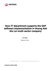 There are two research methods used in the thesis, which are quantitative (with questionnaire) and qualitative (with interviews) surveys. The target group of the questionnaire were all the employees (except the managerial levels) who are working at the HAGL representative office. The survey’s purpose was to evaluate the usefulness of the software and how the employees are satisfied as well as proficient with the SAP software. For the qualitative survey, the interviewees were some of the representative office IT department members. The aim of the interview was to get to know the means, options, difficulties as well as opportunities the representative IT department has to face in maintaining the SAP operations. It could be concluded from the research results that the SAP end-users were highly satisfied with the IT department’s support at HAGL representative office. Nevetheless, there are still some weaknesses which need to be improved to make the company’s SAP solution better in the long-run.