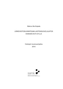 Tämän opinnäytetyön tarkoituksena oli laatia lastensuojelulaitos Konkari-koti Oy:lle asianmukainen ja ajantasainen lääkehoitosuunnitelma tukemaan kyseisessä yksikössä toteutettavaa lääkehoitoa. Tavoitteena oli tehdä tilaajalle lääkehoitosuunnitelma, jonka itse tilaaja ja laillistettu lääkäri hyväksyvät. Samalla tavoitteena oli myös, että tilaaja ottaisi lääkehoitosuunnitelman käyttöön ja siitä tulisi osa yksikön lääkehoitoa.
