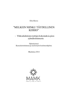 "Melkein niinku täydellinen kerho" : -Yläkouluikäisten tyttöjen kokemuksia pienryhmätoiminnasta