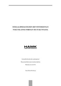 Sosiaalipedagogisen hevostoiminnan nykytilanne Forssan seutukunnassa