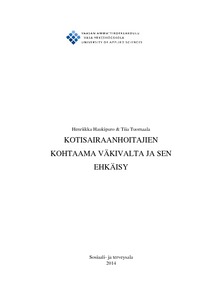 Opinnäytetyön aiheeksi valittiin kotisairaanhoitajien kohtaama väkivalta ja sen ehkäisy. Aihe on ajankohtainen ja tärkeä työhyvinvoinnin ja työssä jaksamisen kannalta. Tutkimuksessa kuvaillaan fyysistä ja psyykkistä väkivaltaa sekä seksuaalista häirintää. Lisäksi tutkitaan, millaista väkivaltaa ja kuinka paljon kotisairaanhoitajat kohtaavat työssään. Tutkimusaineiston keruu toteutettiin kyselylomakkeella. Aineisto analysoitiin induktiivisella sisällön analyysillä sekä laskemalla vastauksien määrät manuaalisesti.