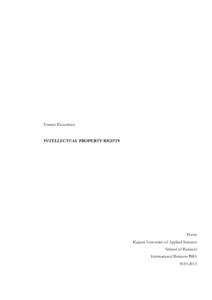 The subject of this thesis is Intellectual Property Rights (IPR). The main objective is to present the basic knowledge of IPR, as well as to gather information about the different organizations and offices which operate with the IPR. The topic was limited to Europe and the United States of America, overlooking the IPR issues, for example, in Asia.