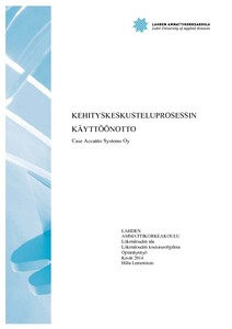 Opinnäytetyön tarkoituksena oli kehittää Accanto Systems Oy:lle toimiva kehityskeskusteluprosessi. Prosessi sisältää ohjeet työnantajalle tiedottamisen järjestämisestä, esimiehelle käytännön järjestelyistä ja keskusteluihin valmistautumisesta sekä tietenkin kehityskeskustelulomakkeen. Toimeksiantaja haluaa saada kehityskeskustelujen avulla enemmän suoraa ja rehellistä palautetta työntekijöiltään.