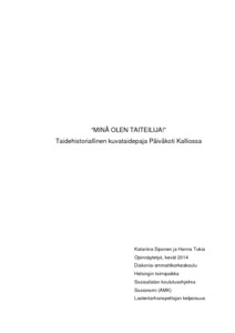 Siponen, Katariina & Tukia, Hanna. “Minä olen taiteilija!”. Taidehistoriallinen kuvataidepaja Päiväkoti Kalliossa. Helsinki, kevät 2014. 82 s., 6 liitettä. Diakonia-ammattikorkeakoulu. Sosiaalialan koulutusohjelma, sosionomi (AMK) + lastentarhanopettajan virkakelpoisuus.