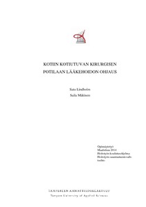 Tämän opinnäytetyön tarkoituksena oli tuottaa tarkistuslista hoitajien työvälineeksi yhtenäistämään kotiin kotiutuvan kirurgisen potilaan lääkehoidon ohjausta. Aihe saatiin Pirkanmaan Sairaanhoitopiirin erään sairaalan osastolta. Opinnäytetyön tehtävänä oli selvittää, millaista on turvallinen lääkehoito kotiutuvan kirurgisen potilaan kohdalla. Opinnäytetyön tavoitteena oli, tuotetun tiedon avulla osallistua osaston turvallisen lääkehoidon ohjauksen yhtenäistämiseen potilasta kotiutettaessa. Hyvä lääkehoidon ohjaus kotiutuvalle potilaalle mahdollistaa potilaan turvallisen lääkehoidon toteutuksen kotiutumisen jälkeen. Huolellinen potilaan ohjaus edistää potilaan paranemista sekä motivoi potilasta ottamaan vastuuta omasta hyvinvoinnistaan.
