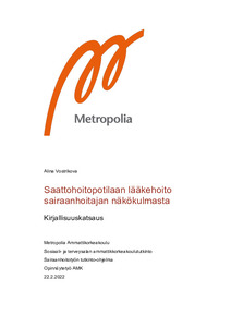 Opinnäytetyön tarkoituksena on kuvata saattohoitopotilaan lääkehoidon toteuttamista sairaanhoitajan näkökulmasta. Tavoitteena on tuottaa aiheesta tietoa hoitotyön opetuksen tueksi. Opinnäytetyö on toteutettu kuvailevana kirjallisuuskatsauksena.