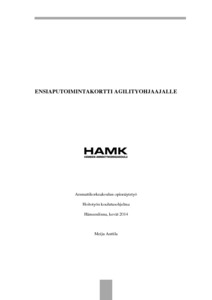 Ensiaputaitoja tarvitaan jokapäiväisessä elämässä. Ensiaputaidot eivät koske pelkästään hoitotyön ammattilaisia, vaan myös muita ihmisiä. Tämän toiminnallisen opinnäytetyön tarkoitus oli opastaa Janakkalan koirakerho ry:n jäseniä ensiavunantoon agilityurheilun harrastus- ja kilpailutilanteessa. Ensiaputaitojen tueksi kehitettiin ensiaputoimintakortti, joka sisältää ensiapuohjeet nilkan nyrjähdyksen, lihasrevähdyksen, murtuman ja haavan hoitoon.