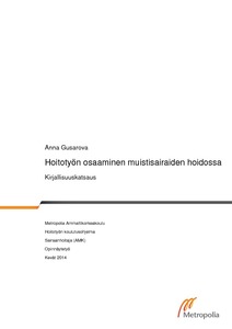 Opinnäytetyön tarkoituksena oli kirjallisuuskatsauksen avulla kuvata hoitotyön osaamista muistisairaiden hoidossa. Tavoitteena oli koota tutkittua tietoa hoitajien osaamisesta muis-tisairaiden hoidossa, kiinnittää huomiota mahdollisiin kehittämistarpeisiin ja edistää yhte-näisten osaamistavoitteiden määrittämistä muistisairaiden hoidossa. Opinnäytetyö toteutettiin osana Kliinisen osaamisen vahvistaminen hoitotyössä -projektia. Projektin tavoitteena oli vahvistaa sairaanhoitajaopiskelijoiden ja sairaanhoitajien näyttöön perustuvaa kliinistä osaamista, tuottaa uutta tietoa ja osaamista työelämään sekä kehittää asiakaslähtöisiä ja turvallisuutta edistäviä toimintakäytänteitä ja -malleja työelämään. Kir-jallisuuskatsauksen aineisto kerättiin tieteellisistä artikkeleista (n = 13). Aineistoa analysoitiin aineistolähtöistä sisällönanalyysiä hyödyntäen. Analyysin perusteella muodostui 13 hoitotyön kompetenssia muistisairaiden hoidossa, jotka olivat: 1) Tieto muistisairauksista ja muistisairaan ihmisen erikoistarpeiden ymmärtäminen, 2) Viestintä- ja vuorovaikutus muistisairaan kanssa, 3) Käytösoireiden ymmärtäminen ja hallinta, 4) Yhteistyö omaisten kanssa, 5) Kuntouttavan hoidon osaaminen, 6) De-mentiaystävällisen ympäristön edistäminen, 7) Eettisen ja asiakaslähtöisen hoidon osaa-minen, 8) Kliininen osaaminen, 9) Palliatiivisen hoidon osaaminen, 10) Itsensä kehittämisen osaaminen, 11) Kehittämis- ja vaikuttamisosaaminen, 12) Ohjaus- ja opetusosaaminen ja 13) Terveyden edistämisen osaaminen. Useammassa tutkimuksessa tuli ilmi, että hoitajien osaamista muistisairaiden hoidossa pitää parantaa. Hoitajilla oli taipumus käyttää todellisuuslähtöistä lähestymistapaa muistisairaiden hoidossa. Koulutus, työkokemus, työhön tyytyväisyys ja asiakaslähtöinen lähestymistapa korreloivat positiivisesti osaamisen kanssa. Työn tuloksia voidaan hyödyntää työelämässä dementiakotien henkilökunnan perehdytyk-sessä, kehityskeskusteluissa sekä koulutustarpeiden kartoituksessa. Tässä työssä luotu kompetenssien viitekehys muistisairaiden hoidossa voi toimia pohjana koulutuksen suunnittelulle.