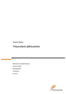 Insinöörityön tarkoituksena oli selvittää jälkitöiden oikeaoppista työnkulkua pienessä yritys-videotuotannossa, jonka lopputuloksessa tavoitellaan kuitenkin ammattimaista työjälkeä: miten erilaisia asioita tulisi ottaa huomioon nykypäivänä, kun alkaa kuvata videota, millainen esitöiden merkitys on jälkitöihin ja kuinka valmistelut ja tekovaiheessa tietoisuus jälkitöiden osuudesta vaikuttavat jälkitöiden tekemisen mielekkyyteen ja nopeuteen.