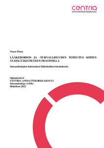Vastaajat ovat pääasiassa tyytyväisiä osastojen lääkehoidosta ja lääketurvallisuudesta. Vastauksissa tuotiin esille isoimpana turvallisuusriskinä kiire ja häiriötekijät lääkehoitoa toteuttaessa. Oman ammattitaidon varmistaminen ja omat koulutusmahdollisuudet pidettiin tärkeänä osana turvallisuutta. Vastauksissa tuotiin esille 7 O:n sääntö lääketurvallisuutta edistävänä asiana. Lääkehoitosuunnitelma tuotiin esille tutkimuksen vastauksissa vähäisesti. Moni vastaaja koki lisäkoulutuksen tarvetta lääkitysturvallisuuteen liittyen. Yli puolet vastaajista oli työskennellyt alalla vähintään viisitoista vuotta.