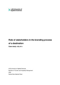 The thesis examined how stakeholders can be successfully involved in the branding process of a destination. The city of x was chosen as a case destination as it was developing a brand at the time the study was conducted and the author was allowed to accompany this process.