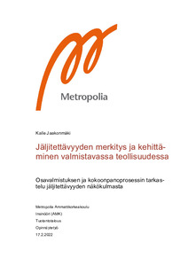 Jäljitettävyyden merkitys ja kehittäminen valmistavassa teollisuudessa : osavalmistuksen ja kokoonpanoprosessin tarkastelu jäljitettävyyden näkökulmasta