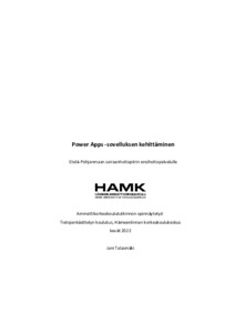 Opinnäytetyön tavoitteena oli kehittää toimeksiannon mukainen ERTI-raportointi Power Apps -sovellus. ERTI-raportointisovelluksella raportoidaan ensihoidon erityistilanneyksikön (E EP088) tehtävänaikaisia tapahtumia ja toimenpiteitä. Opinnäytetyössä tutkittiin, soveltuuko Power Apps -sovellus toimeksiantajan käyttötarkoitukseen, voiko Power Automatella toteuttaa sovelluksen taustalla tapahtuvia automaatioita, ja mitä M365-palveluita tarvitaan, että sovellus voitiin kehittää. Opinnäytetyön toimeksiantaja on Etelä-Pohjanmaan sairaanhoitopiirin ensihoitopalvelu.