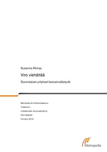 Mikä Virossa viehättää? Opinnäytetyön tavoitteena on selvittää, miksi suomalaiset yritykset kansainvälistyvät naapurimaahamme Viroon. Tutkimustyyppinen opinnäytetyö sisältää teoreettista tietoa kansainvälistymisestä ja Viron liiketoimintaympäristöstä sekä tapaustutkimuksen aiheesta. Tapaustutkimuksen esimerkkiyritykseksi on valittu suomalaistaustainen vuonna 2011 perustettu tilitoimisto.