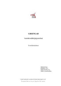 Vastatakseen kehityksen tuomiin tarpeisiin Tampereen ammattikorkeakoulu on lisännyt opetukseen uusiutuvien energioiden opetusta ja opetusjärjestelmiä. Opinnäytetyön tarkoituksena oli valmistaa laboratoriokäyttöön soveltuva aurinkosähköjärjestelmä, jolla voitaisiin simuloida kyseisten järjestelmien normaalia käyttöä. Työhön kuuluivat järjestelmän suunnittelu, rakentaminen, käyttöönotto sekä testaus. Työ oli prototyyppiluonteinen, koska ahtaiden sisätilojen ja normaalista poikkeavan säteilynlähteen vuoksi ei voitu välttämättä käyttää suoraan valmistajan ohjeistamia kiinnitys- ja käyttötapoja.